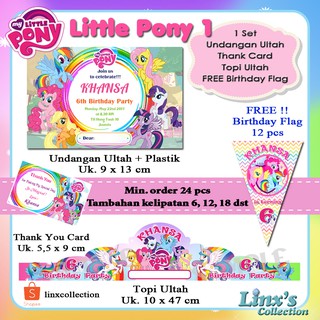 1 Set Undangan Ultah Anak Kartu Souvenir Topi Ulang Tahun My Little Pony