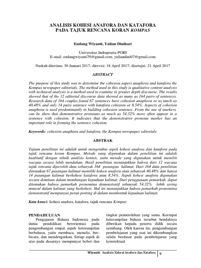 Pdf Analisis Kohesi Anafora Dan Katafora Pada Tajuk Rencana
